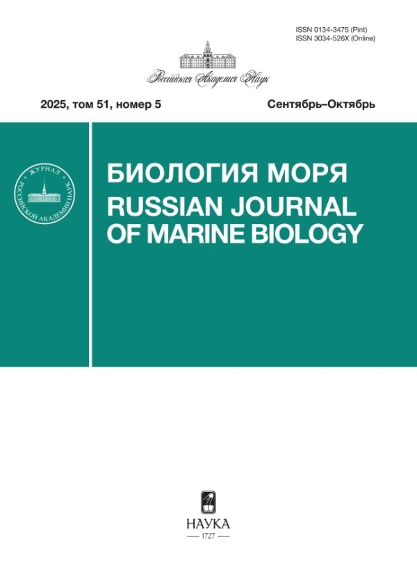В сентябре 2024 г. при водолазных погружениях в Тауйской губе Охотского моря были обнаружены спаривающиеся особи пятиугольного волосатого краба Telmessus cheiragonus. Спаривание происходило на глубине 0.6–10 м, при температуре воды 8–9°С. Наибольшие скопления крабов этого вида были отмечены на глубине 2.5–2.8 м в поясе макрофитов. Минимальная ширина карапакса функционально половозрелых самцов составляла 84 мм, самок – 48 мм. В целом соотношение самок и самцов, обнаруженных в ходе исследования, составляло 1:1.8.