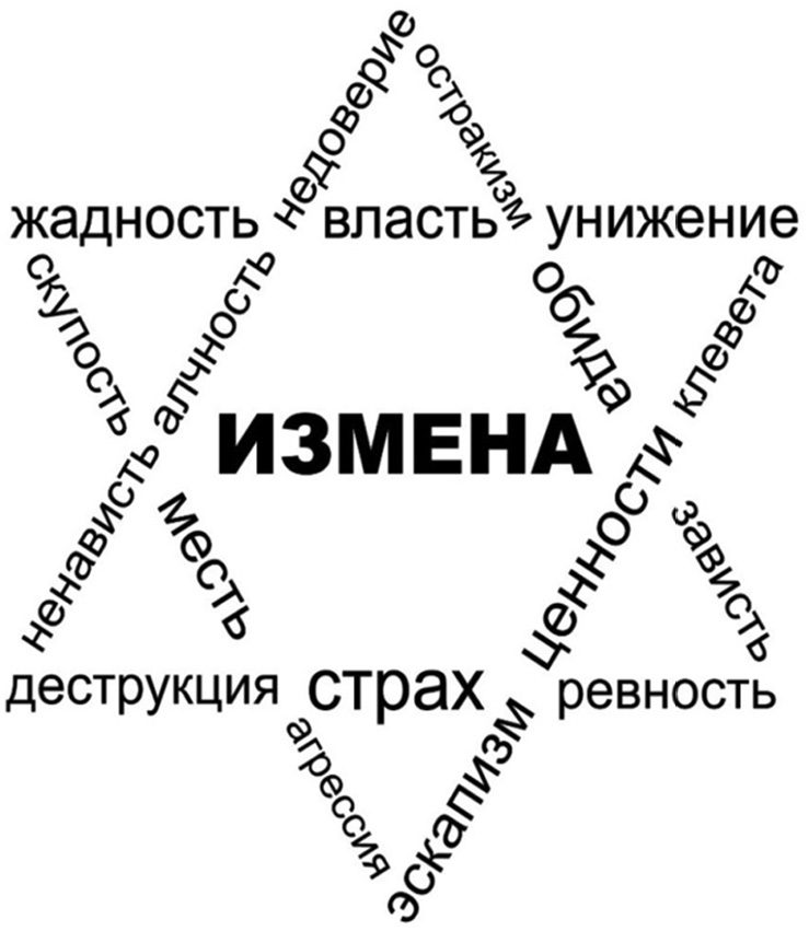 Treason and betrayal as psychosocial phenomena do not exist independently of a person. Many religions consider them to be a violation of a moral taboo. These deeds, marked since ancient times, are based on unchecked egoistic attitudes of a subject which dominate over the declared social norms, while traditional moral imperatives were always considered values of the society. The triggers of deviation from the accepted norms may be humiliation, envy and many other concomitant determinants which fringe upon a person’s self-esteem.