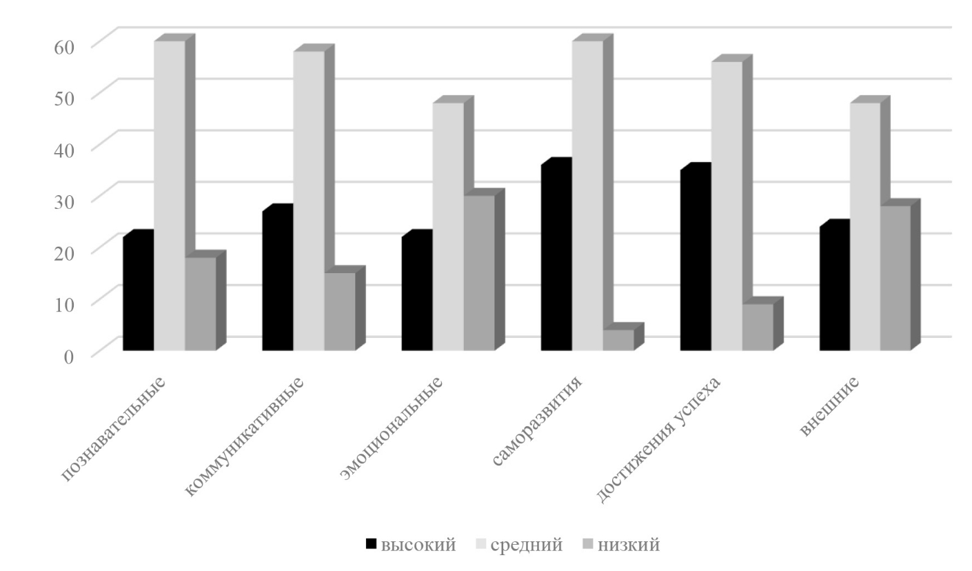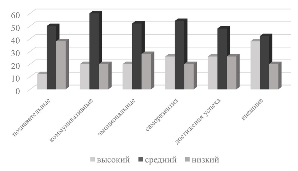 Проблема мотивации давно изучается учеными, результаты исследований изложены во множестве публикаций, среди которых – монографии как российских (В.Г. Асеев, Л.И. Божович, В.К. Вилюнас, Е.И. Ильин, И.А. Зимняя, Г.А. Карпова, В.И. Ковалев, А.Н. Леонтьев, А.К. Маркова, П.М. Якобсон и др.), так и зарубежных авторов (Дж. В. Аткинсон, А.Г. Маслоу, X. Хекхаузен и др.). Большинство исследователей определяют мотив как психическое явление, ставшее побуждением к действию, поступку или деятельности; это то, что определяет, стимулирует, побуждает человека к совершению какого-либо действия. Исходя из этого мотивы представляют собой сложные динамические системы, в которых осуществляются выбор и принятие решений, анализ и оценка выбора [4, 5, 6]. В определении учебной мотивации ученые придерживаются разных точек зрения. Так, по Г.А. Карповой учебная мотивация – это проявляемая учащимися мотивированная активность при достижении целей учения. Наиболее значимыми мотивами для обучающихся являются познавательные, коммуникативные, эмоциональные, мотивы саморазвития, достижения успеха, поощрения и наказания (внешние) [6].