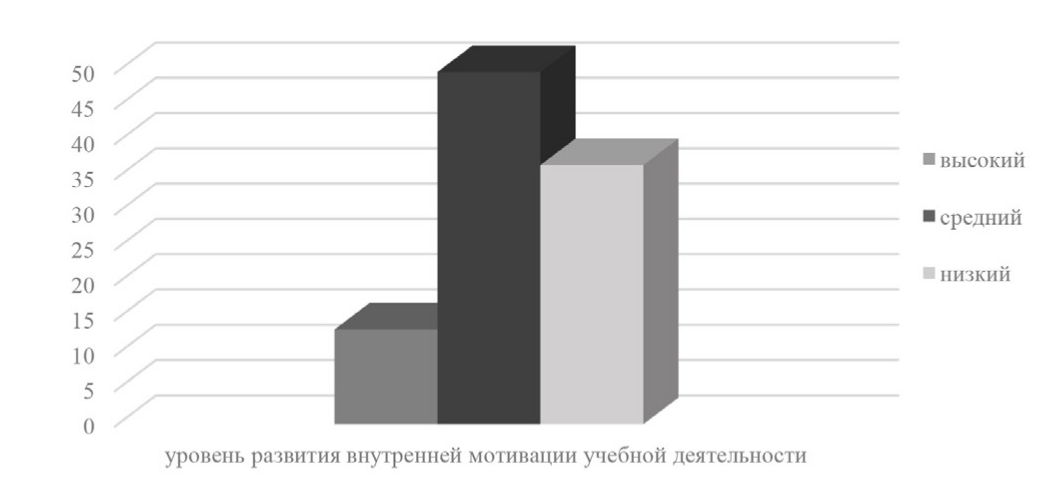 Рис. 2. Уровень развития внутренней мотивации учебной деятельности по методике Т.Д. Дубовицкой