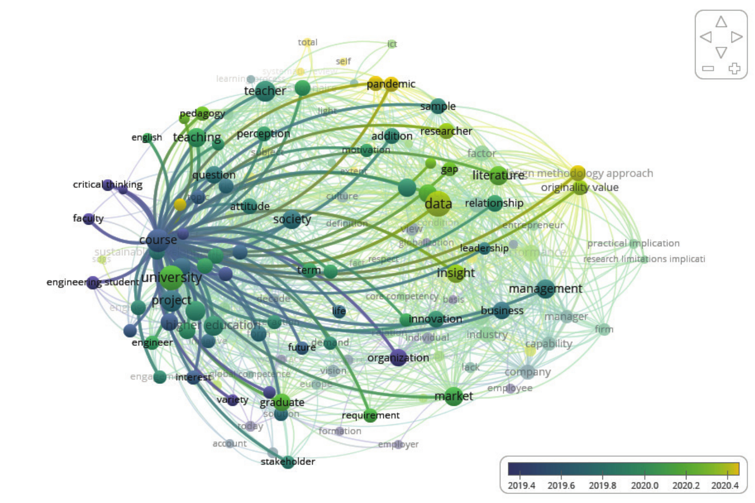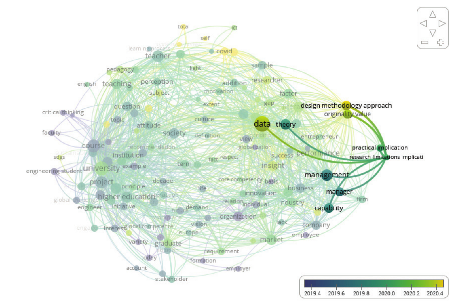 There are 341 scientific articles on WOS which have been published between 2018 to 2022 containing the key word of global competence. WOSviewer is employed to develop a bibliometric mapping for the analysis of the latest research results of the concept of global competence (Figure 2).