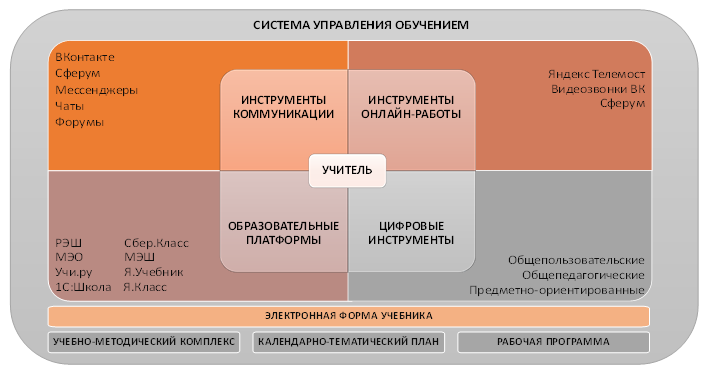 В Постановлении Правительства РФ от 7 декабря 2020 года № 2040 «О проведении эксперимента по внедрению цифровой образовательной среды» цифровая образовательная среда рассматривается в качестве совокупности условий, которые позволяют реализовать образовательные программы начального общего, основного общего и среднего общего образования на основе электронного обучения и дистанционных образовательных технологий. Данный процесс обеспечивается с помощью электронной информационно-образовательной среды, состоящей из электронных информационных и образовательных ресурсов и сервисов, цифрового образовательного контента, информационных и телекоммуникационных технологий, технологических средств [2].