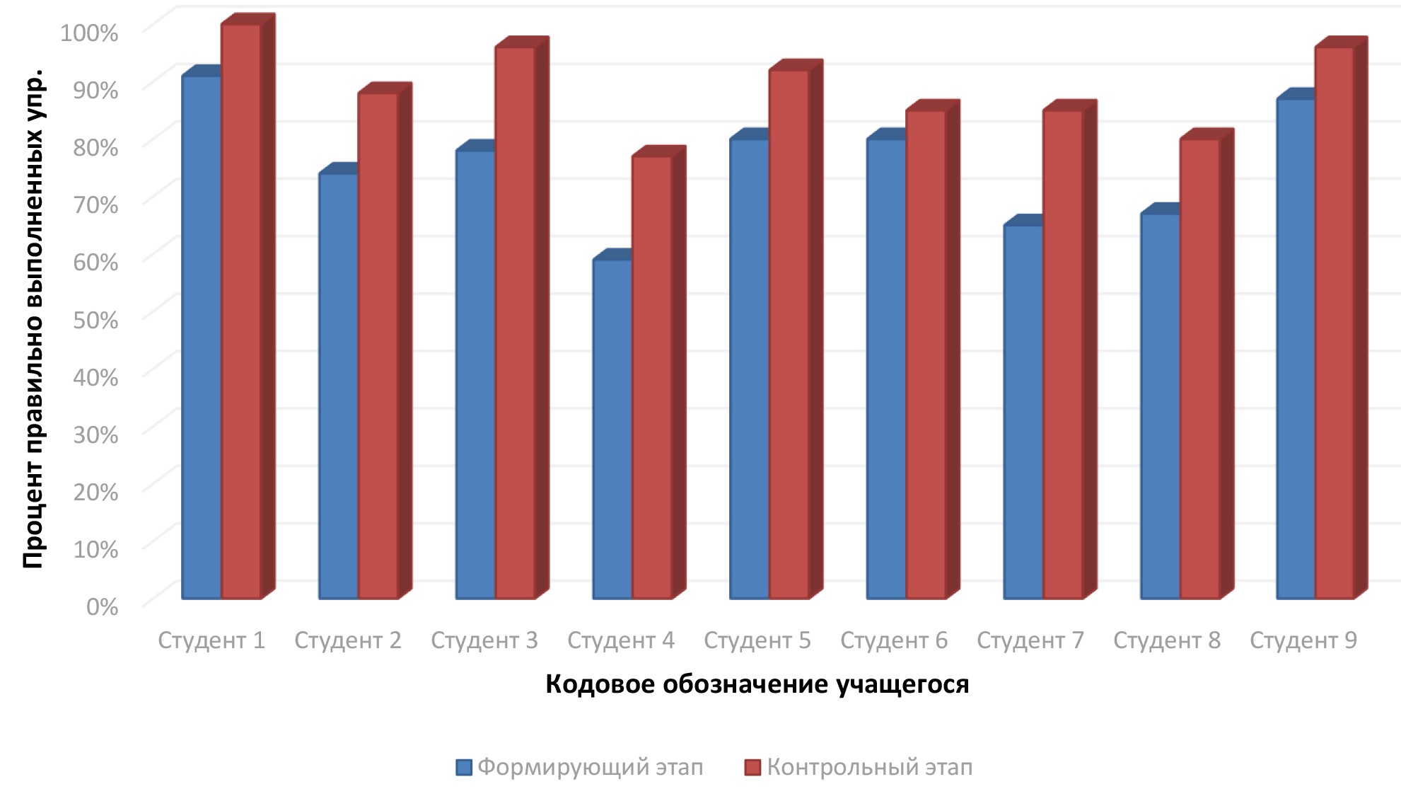 В табл. 8 представлены результаты обучающихся после выполнения упражнений на завершающем этапе эксперимента.