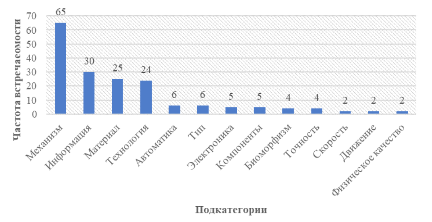 Рис. 3. Подкатегории технического компонента робота и их частота встречаемости