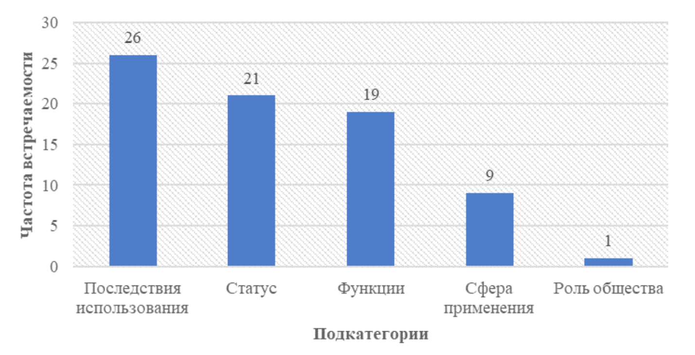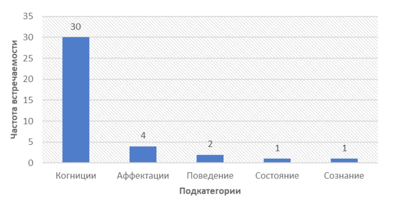 Рис. 5. Подкатегории психологического компонента робота и их частота встречаемости