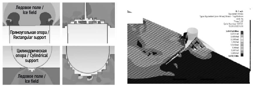 В настоящее время полномасштабное численное моделирование в проектировании морских ледостойких сооружений используется крайне редко. Хотя количество исследований по численному моделированию механики льда пока невелико, их число увеличивается в последние годы, что свидетельствует о растущем интересе научного сообщества к этой теме. Необходимо отметить, что, с вычислительной точки зрения, задачи локального взаимодействия жестких объектов и деформируемых конструкций с ледовыми массивами являются одними из самых сложных задач механики деформируемого твердого тела (МДТТ), так как они включают практически все виды нелинейностей. В общем случае, указанные задачи являются нестационарными (быстропротекающими), контактными, геометрически и физически нелинейными, что требует выработки соответствующих подходов к численному моделированию контактного взаимодействия с ледовой средой.