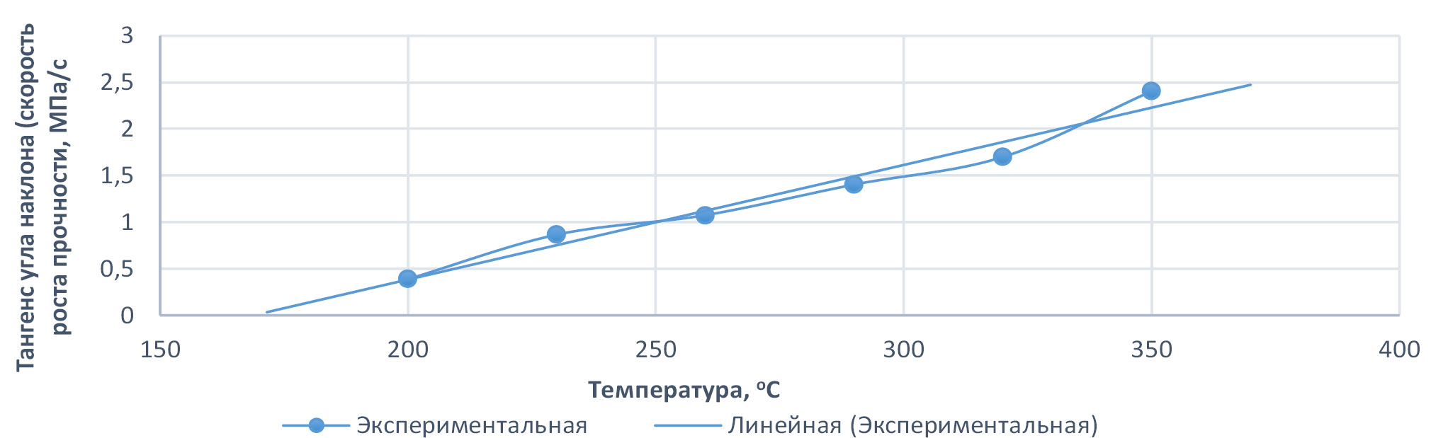 Таким образом, оказалось, что скорость роста прочности имеет линейную зависимость от температуры оплавления.