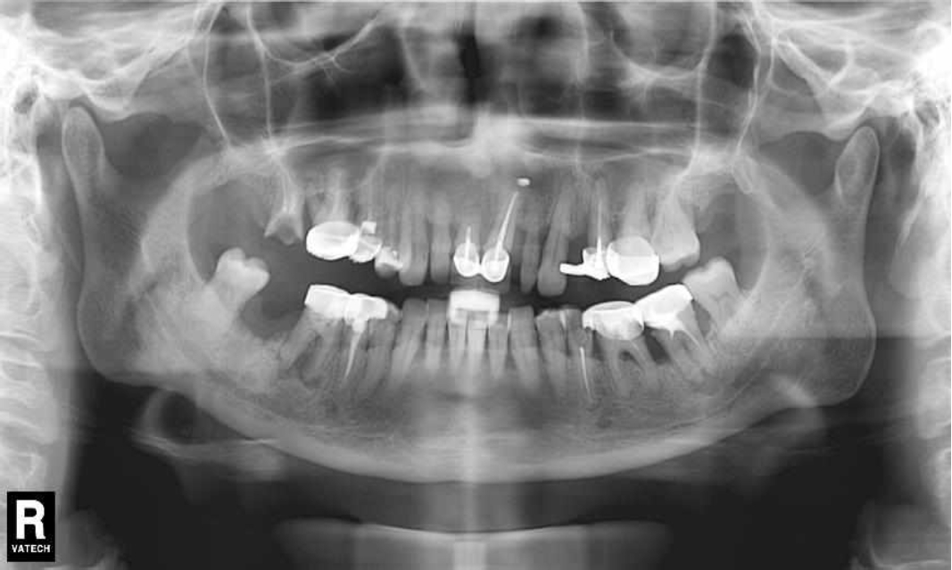 Рис. 2. Ортопантомограмма исходной ситуации пациента  состояния полости рта