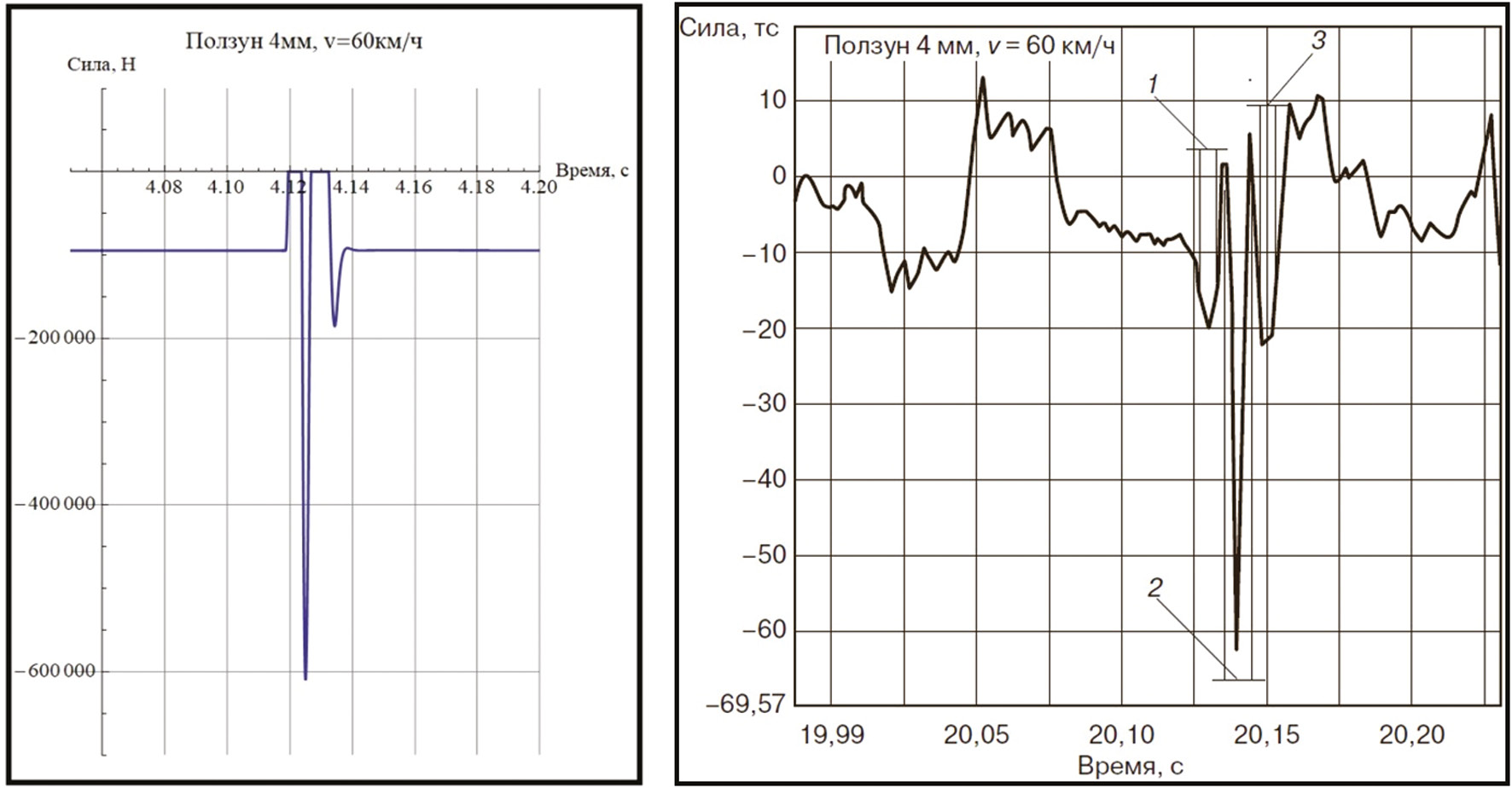 Результаты. Оба варианта определения силы показали абсолютное совпадение графиков силы при их наложении (приведены на рис. 2 слева).