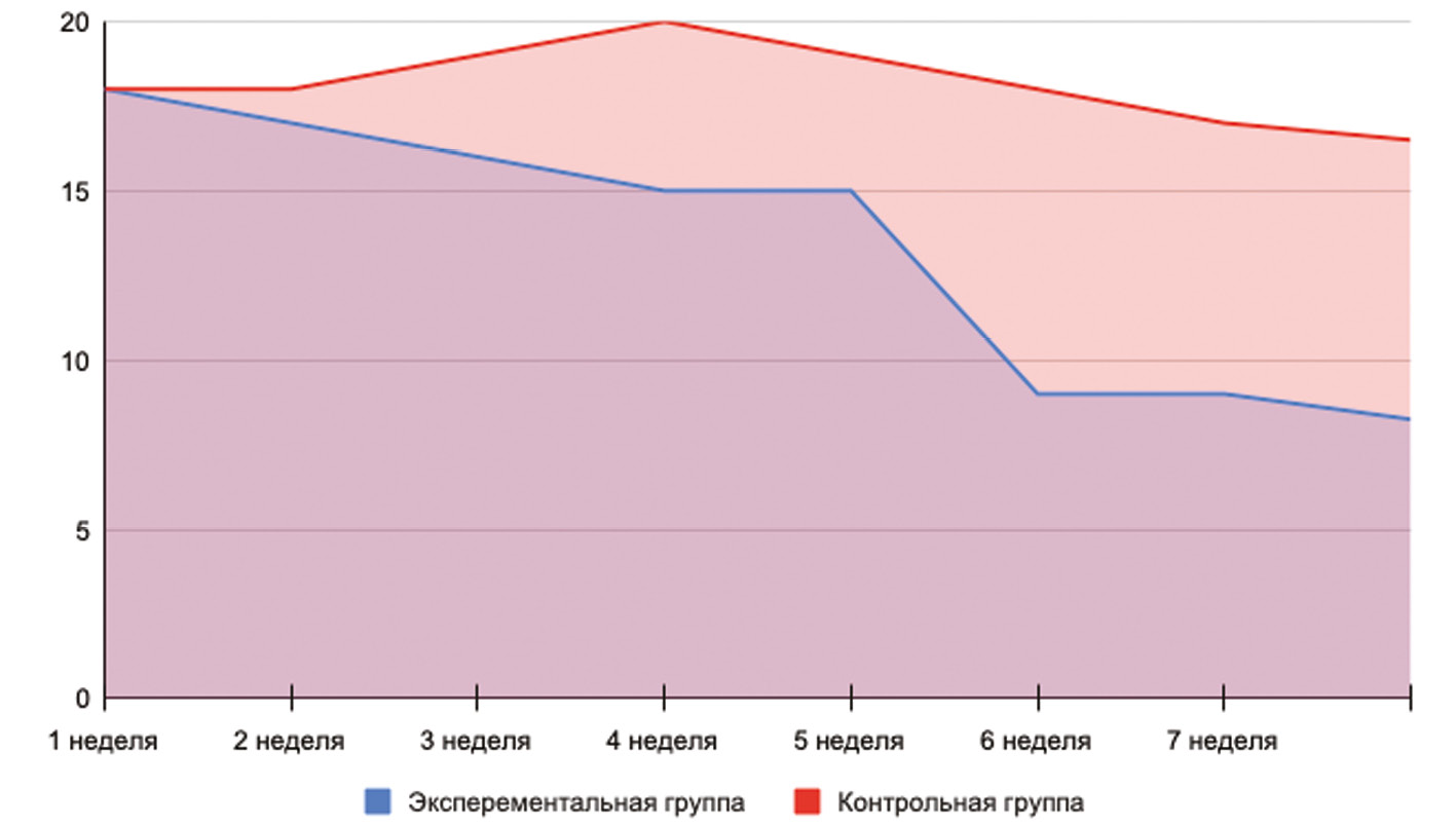 Рис. 1. Экспериментальная таблица результатов групп за 8 недель