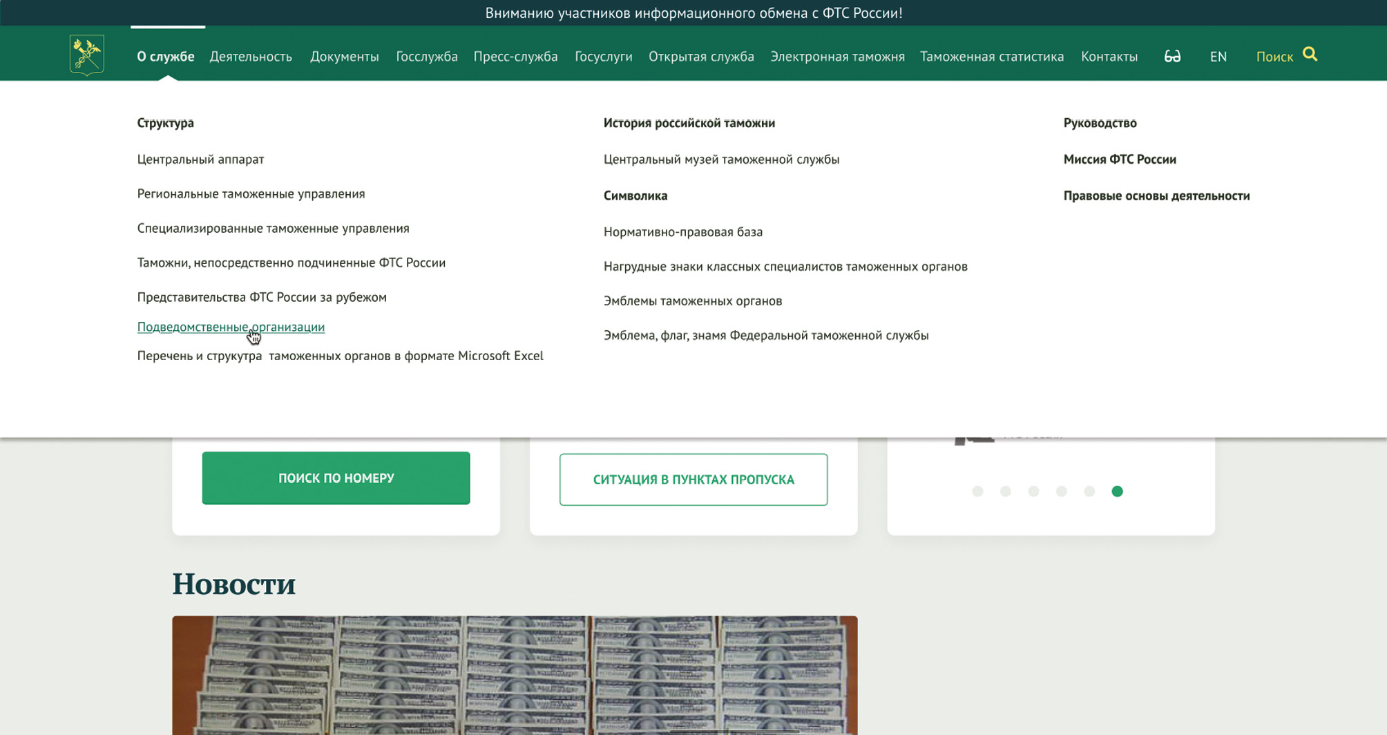 Рис. 2. Обновленный вариант меню официального сайта ФТС