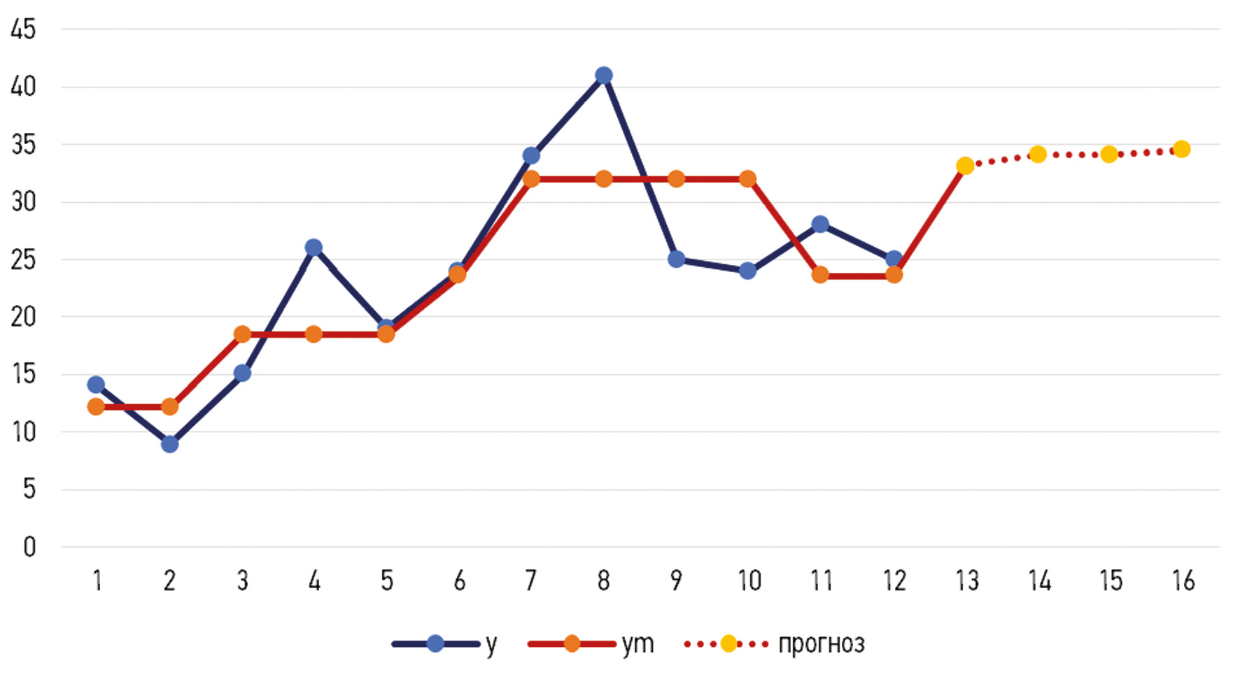 На рис. 1 представлено графическое сопоставление модельных расчетов и фактических значений выходного показателя y в рассматриваемом периоде.