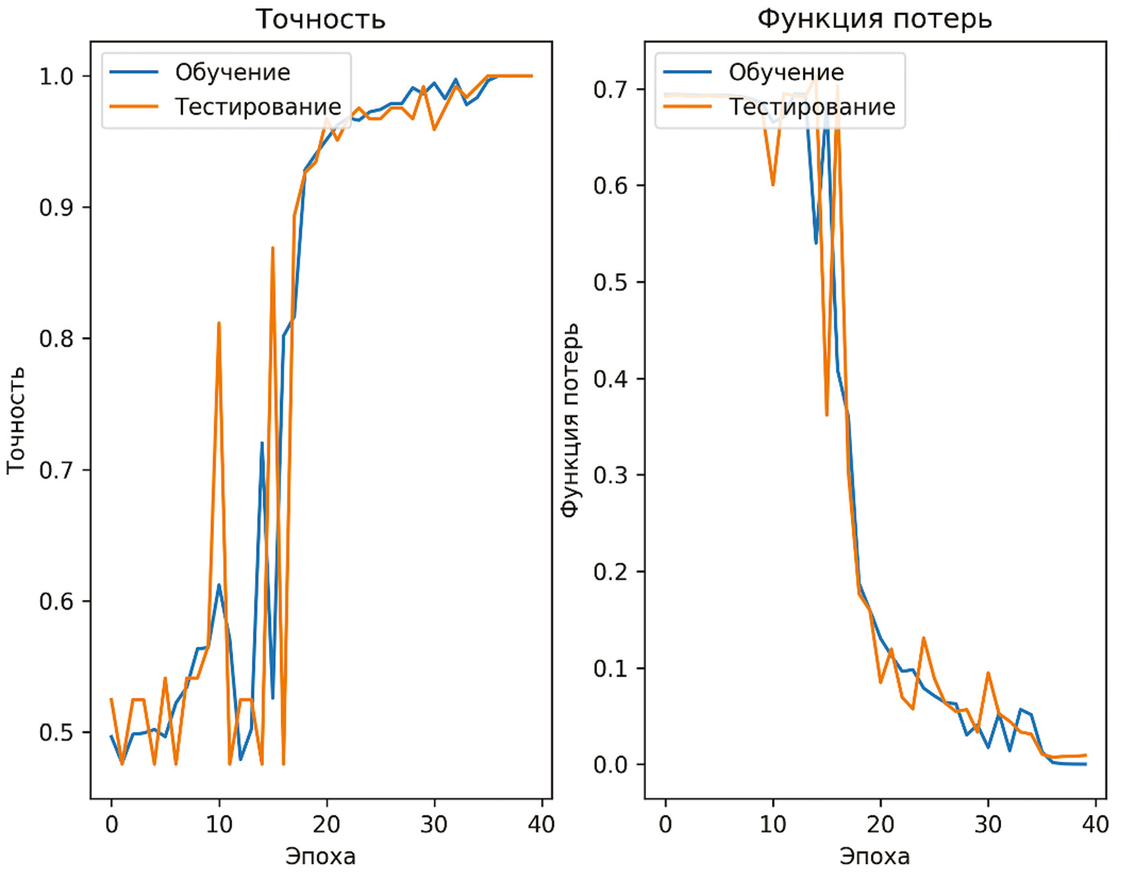 Рис. 1. График точности и функции потерь