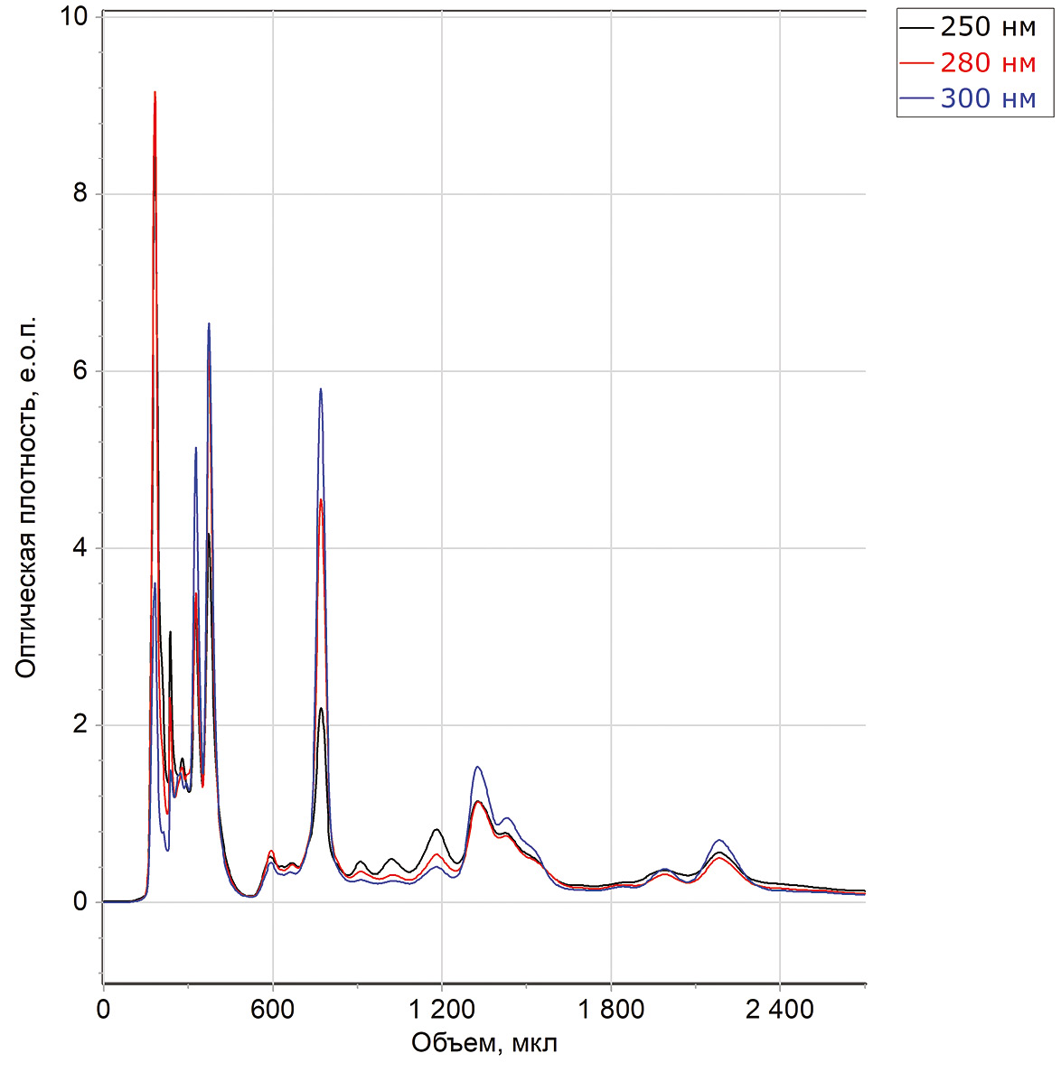 Методы. В качестве аналитического метода, позволяющего провести исследование влияния добавки ионной жидкости в подвижную фазу на характер разделения компонентов спиртового экстракта ромашки лекарственной, был выбран вариант ВЭЖХ со спектрофотометрическим детектированием. В работе использована микроколонка с привитой фазой С18 — ProntoSIL 120-5 C18 AQ, в качестве компонентов элюента использовались вода/ацетонитрил 85/15 об.%, с добавкой трифторуксусной кислоты 0,1 % для подавления диссоциации органических кислот, входящих в состав цветков ромашки лекарственной. Детектирование проводилось при трех длинах волн в УФ области спектра (для флавоноидов и ароматических кислот) — 250(254), 280 и 300 нм. В работе в качестве ионных жидкостей (ИЖ) применялись 1-бутил-3-метилимидазолий бромид [C4MIM][Br], 1-гексил-3-метилимидазолий бромид [C6MIM][Br], 1-децил-3-метилимидазолий бромид [C10MIM][Br], 1-гексил-3-метилимидазолий тетрафторборат [C6MIM][BF4], 1-децил-3-метилимидазолий тетрафторборат [C10MIM][BF4].