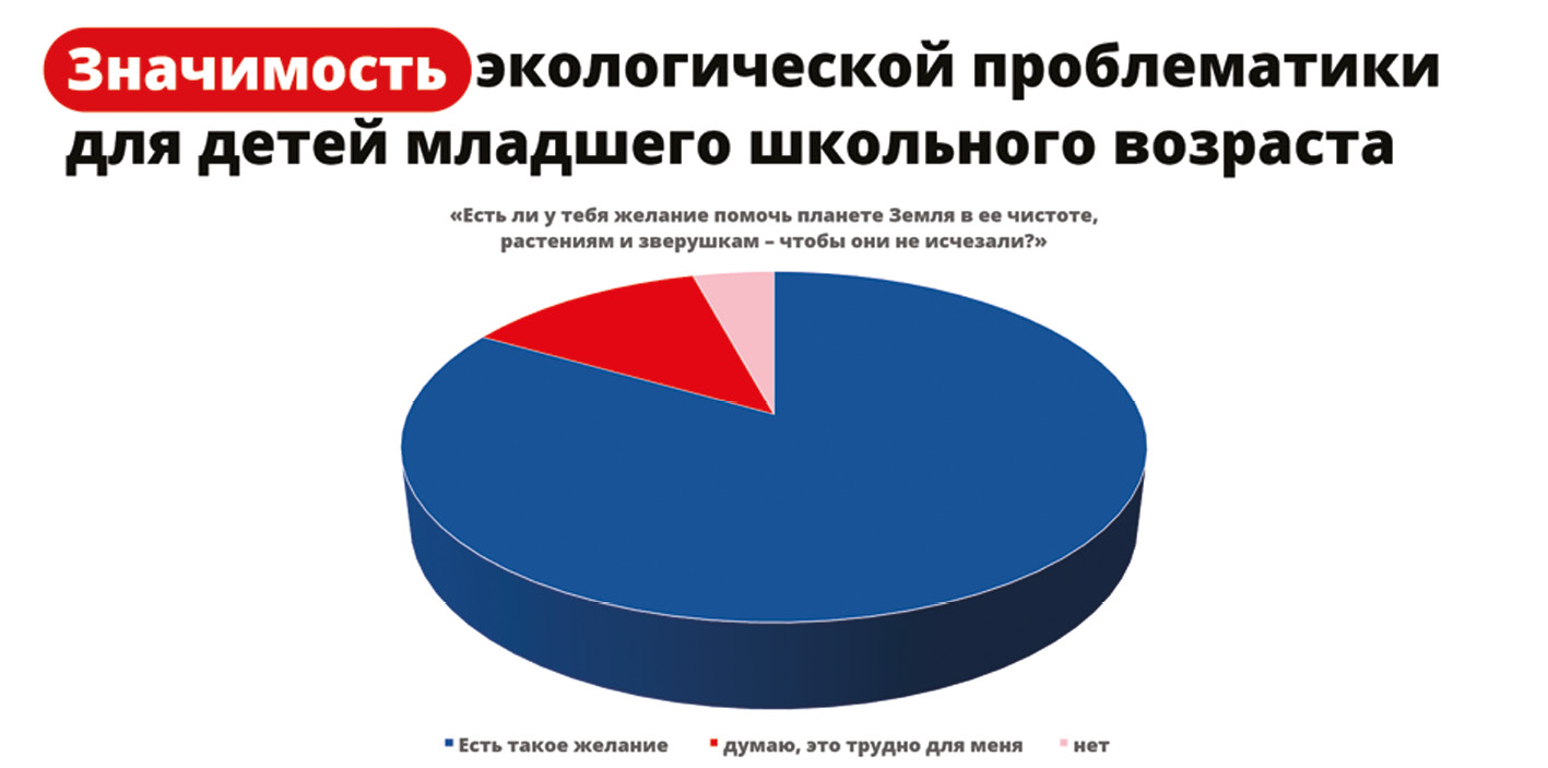 Результаты. Мы выяснили, насколько важна экологическая тематика для детей младшего школьного возраста, проведя онлайн-опрос. В опросе приняли участие обучающиеся младших классов самарских школ. Отвечая на вопросы авторской анкеты, дети более чем в 80 % случаев положительно ответили на вопрос «Есть ли у тебя желание помочь планете Земля в ее чистоте, растениям и зверушкам — чтобы они не исчезали?» (рис. 1). В рамках «Движения Первых» данный выбор соответствует направлению «Экология и охрана природы "БЕРЕГИ ПЛАНЕТУ!"».