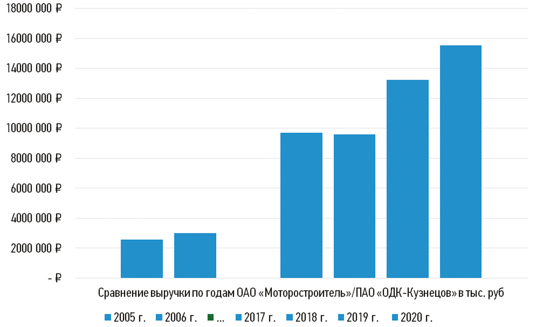 Для сравнения выручки предприятия был проведен анализ документов, а именно годовых отчетов в период 2005–2006 гг. — до консолидации предприятий и 2018–2020 гг. — после объединения.