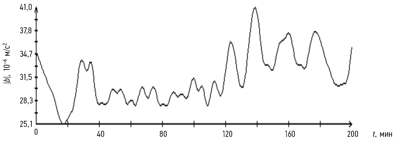 Рис. 3. Экспериментальные значения бортовых микроускорений для КА «Фотон»